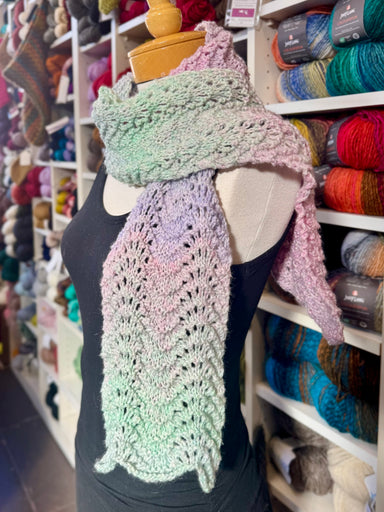 The Twinkle Scarf by the ImagiKnit design team is knit with fluffy fan favorite Tulla Twinkle, a soft chainette yarn that comes in six pretty ombré...