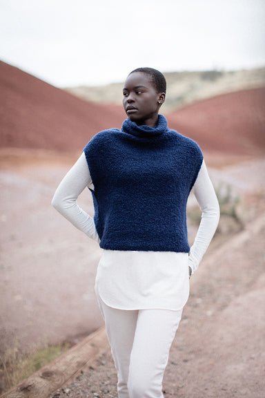 Shown in color 62502 Wild Rice, size 46½“ with approximately 14” of ease.A cozy slipover top is an ideal layering piece for winter! Designed by Amy...