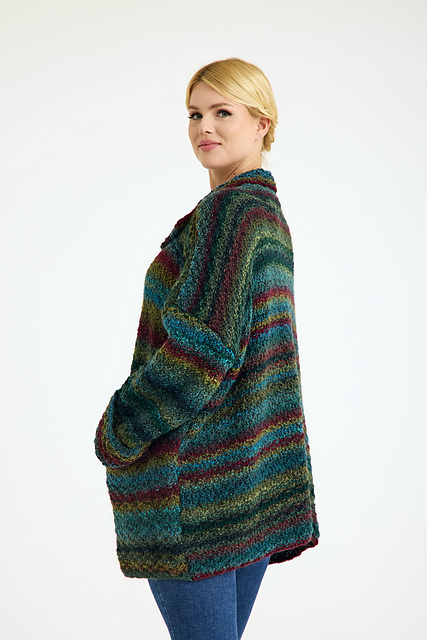 This garment is knit using US 9 and US 10.5 knitting needles.