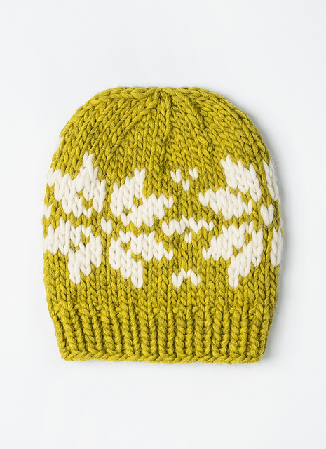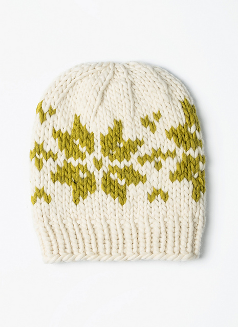 Chase away the chill in this extra warm snowflake hat by Bobbi IntVeld. Knit with two hanks of Woolstok North, you will have plenty of yarn for two hats knit in reverse order.