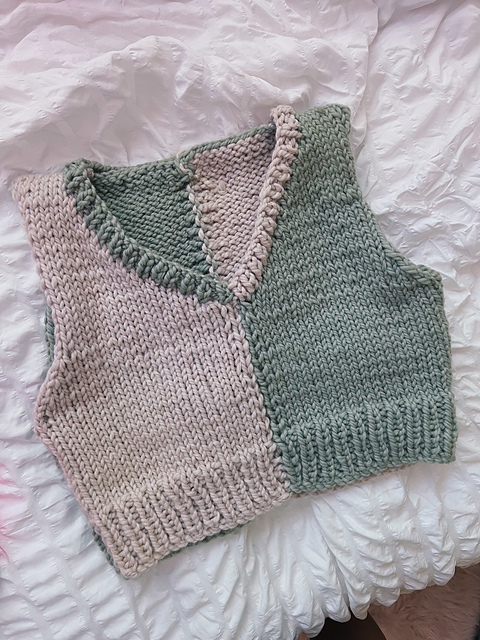 This vest has a simple construction and is worked flat and the neck is picked up and worked in the round. Do a crew neck or a v-neck. It has a boxy, oversized look and gives you that nonchalant vibe ;).