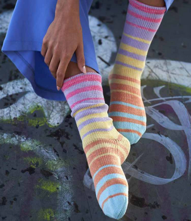 Knit the little ones matching striped sock that they'll love! You can knit up to three pairs in size 1, two pairs in size 2 or a sin...