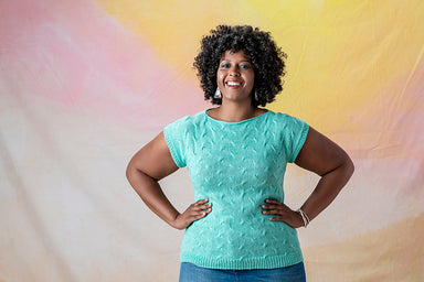 Maelle by the Berroco Design Team is a classic and cozy tee with a fun waffle-texture yoke. Back and front are worked separately and seamed, an...