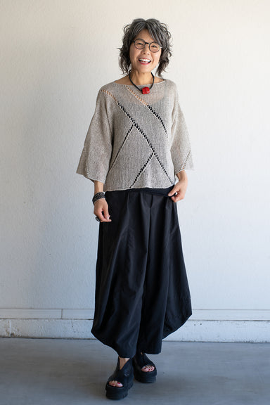 This top is fun to knit. Markers, yarn overs, and decreases create lines of moving eyelets. You’ll enjoy working these eyelets combined with sto...