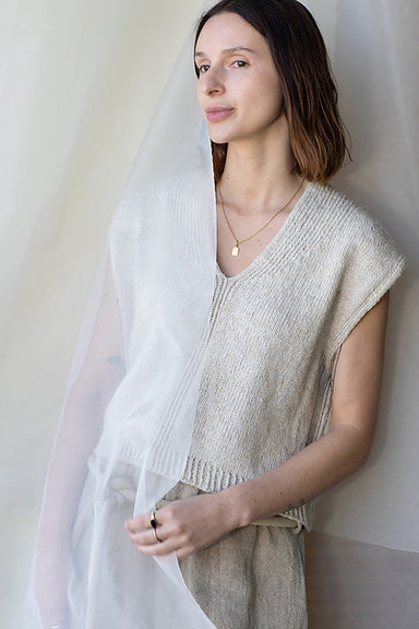 The Maybel vest by Hanna Maciejewska is knitted seamlessly from the top down, starting with the back section of a wide collar. Back stitches a...