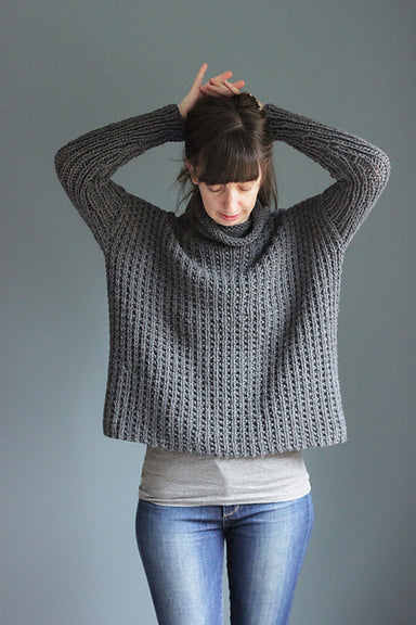 Bosco by Elizabeth Smith is an oversized, loose boxy pullover knit seamlessly using chunky/bulky-weight yarn knit up on a needle size larger ...