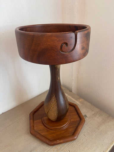 Deep brown with a rattan style inlay and hinged lid top. Dean made a yarn bowl for his wife years ago and through trial and error he has learned wh...