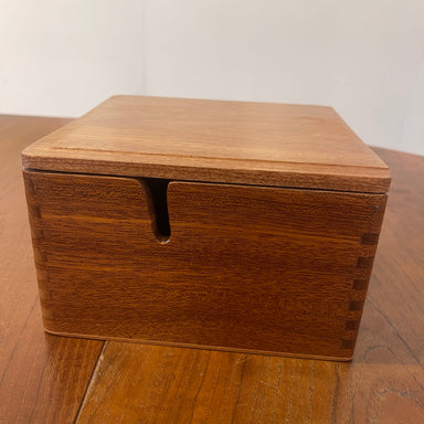 Upcycled wooden cigar box in a beautiful honeyed maple color. No branding. Hinged lid with a simple cutout added for yarn to feed.Dean made a yarn ...