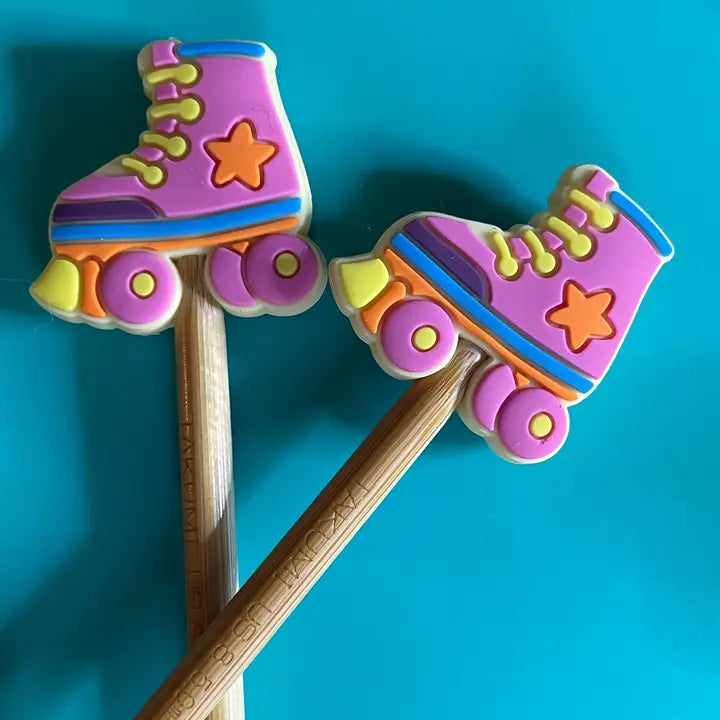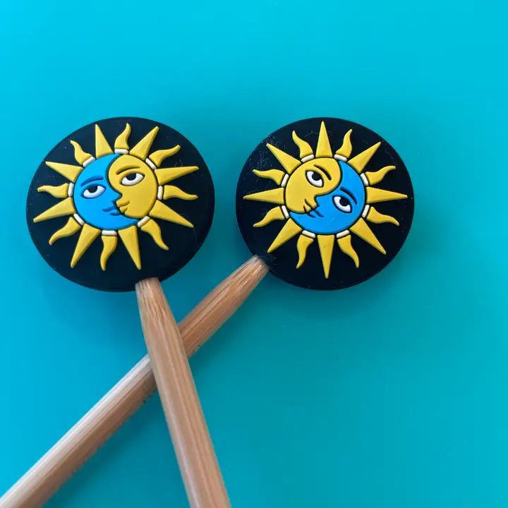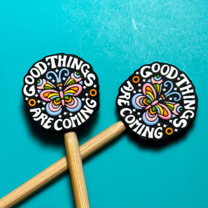 These soft, slightly squishy knitting needle point protectors are so fun to use! Made of BPA-free, food-grade silicone, they keep your stitches secure and defended against the chaos of the universe. If only they worked for more than just knitting... Simply stick your knitting needle points into the hole in the point protector and your stitches will stay secure! Works best with needles size US 3 - US 11. (For reference, all photos show US 8 needles.) Each pair comes in a clear, branded resealable zip bag.