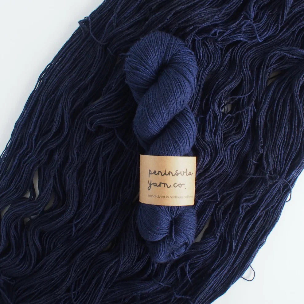 Peninsula Yarn BFL is wool from the British Blue Faced Leicester sheep, known for its longer staple, curly wool. The longer staple length of the wool means it retains strength, and is durable with less pilling. The tight curls of the wool means great memory and will hold it’s shape compared to merino wool. Longer staple wool also has a slight sheen to it, although not quite as next-to-skin soft as merino. This is a great alternative sock yarn to a merino/nylon blend. Superwash means you can throw it in the washing machine without fear of felting and hang or lay flat to dry (although I always recommend hand-washing even for Superwash yarns)